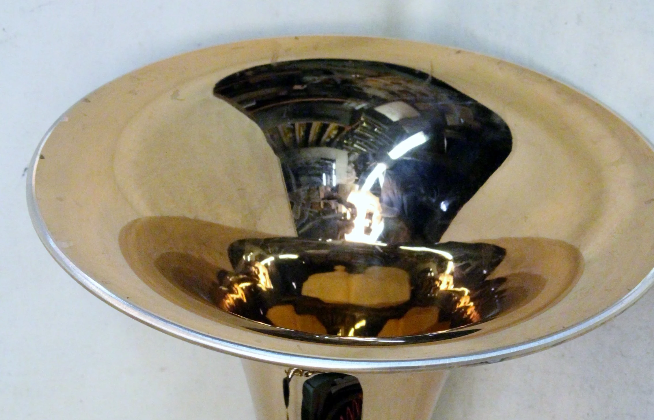 The assumption is usually that to form a rim would be to roll the bell around a wire as in most new instruments. There are a number of reason that this isn't ideal or even possible in most cases of previously finished bells. To roll the bell metal over a wire, the bell would normally be mounted on the mandrel on which it was made and spinning on a lathe. While it would be possible to make some sort of temporary mandrel from wood or plastic, this would only be possible with straight bells sections. Also, it would reduce the diameter of the rim by about 3/4" (3/8" each side), which in a repair would be unacceptable. Steve Dillon of Dillon Music tells me that they paid a machinist to build a beading machine, similar to what is used in automobile body fabrication to form a new rim. This is used mostly to reduce the rim diameter of some of the huge American BBb tubas to agree with our more modern sensibilities.