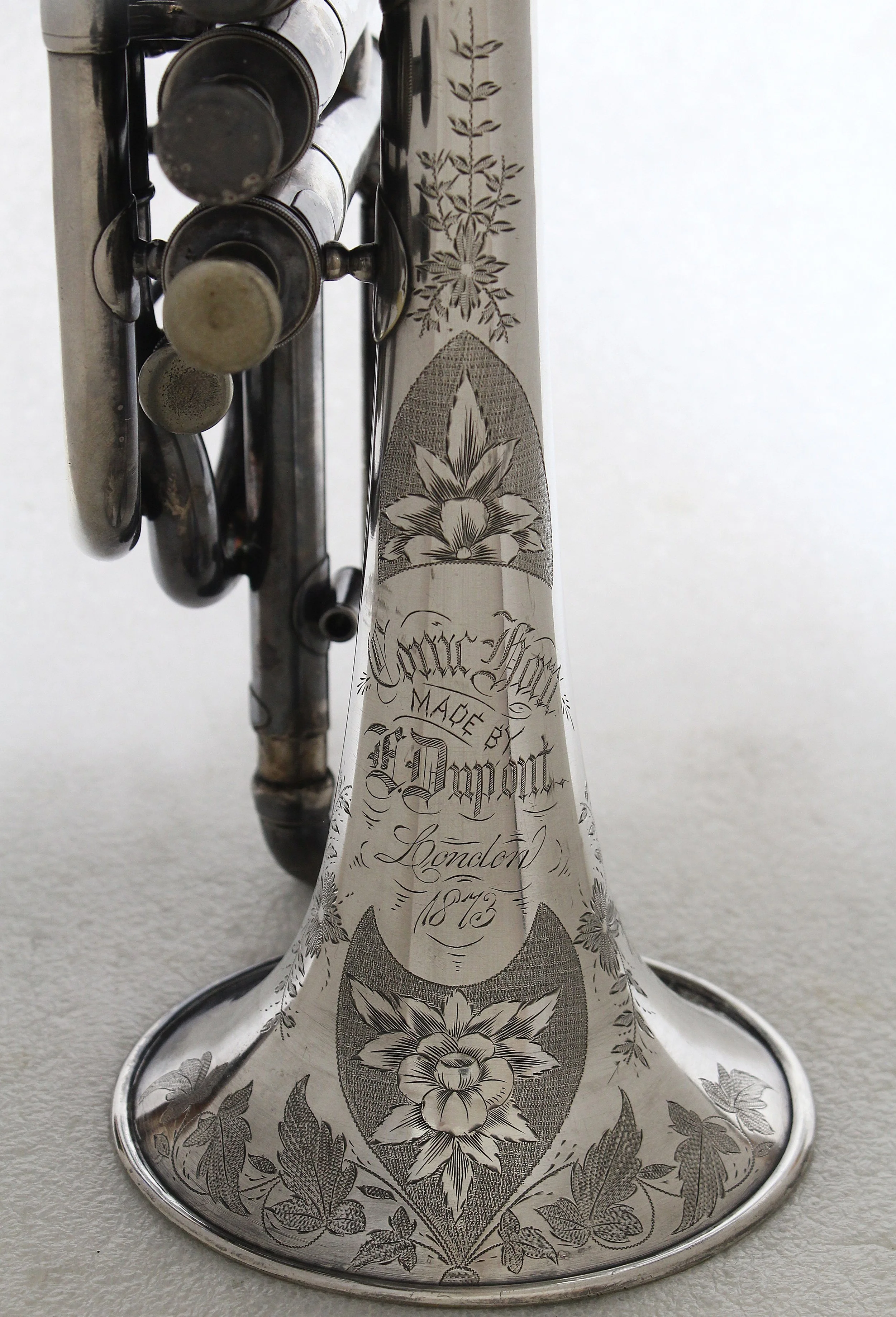 This highly unusual cornet, in the collection of Bill Faust, is the only known example signed by E. Dupont during his years in England.